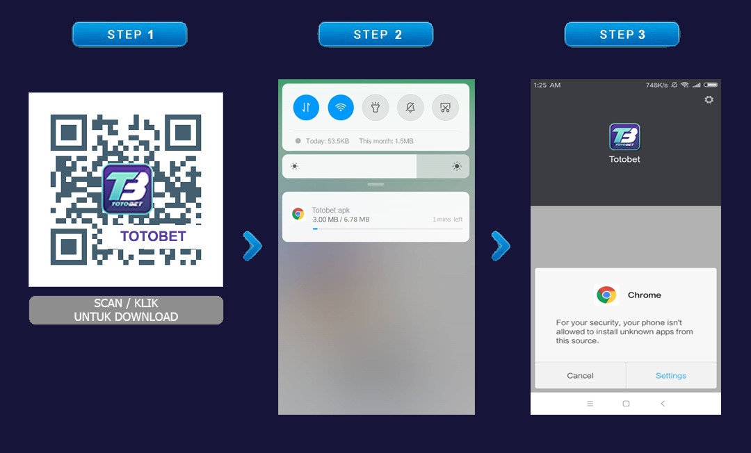 Berikut ini adalah cara download aplikasi android TOTOBET pada handphone android anda :